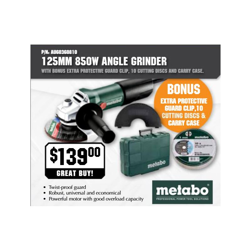 125mm 850w Angle Grinder with bonus cutting discs and guard