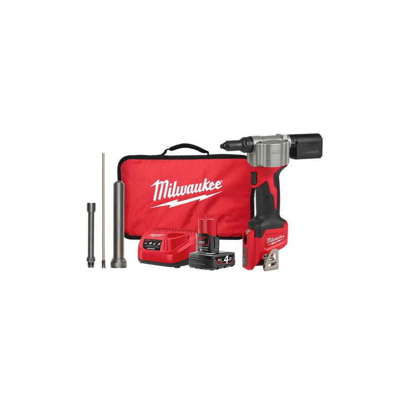 The M12™ Rivet Tool is a cordless solution that delivers fast, easy riveting while maintaining performance, durability, and size. The M12BPRT-0 can pull up to 500 3/16" stainless steel rivets or 900 1/8" steel rivets on one charge with a 3.0Ah battery, and reduces muscle effort from a hand tool by 65%. No compressors or hoses during set up and operation makes this tool a great replacement to pneumatic products. Delivers maximum durability from common jobsite conditions and use. This is the most compact cordless rivet tool on the market, measuring only 165mm in length allowing users more access in tight spaces. The M12™ Rivet Tool is part of the M12 battery platform, offering 50+ solutions on one battery system.