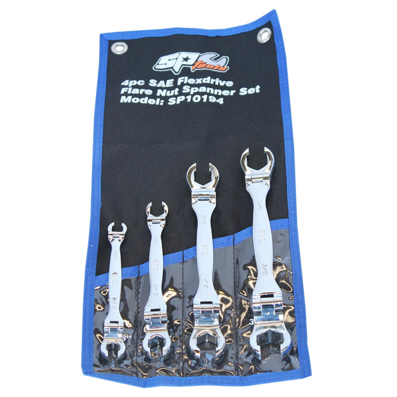 SET SPANNER DOUBLE FLARE NUT FLEX HEAD 4PC SAE SP TOOLS